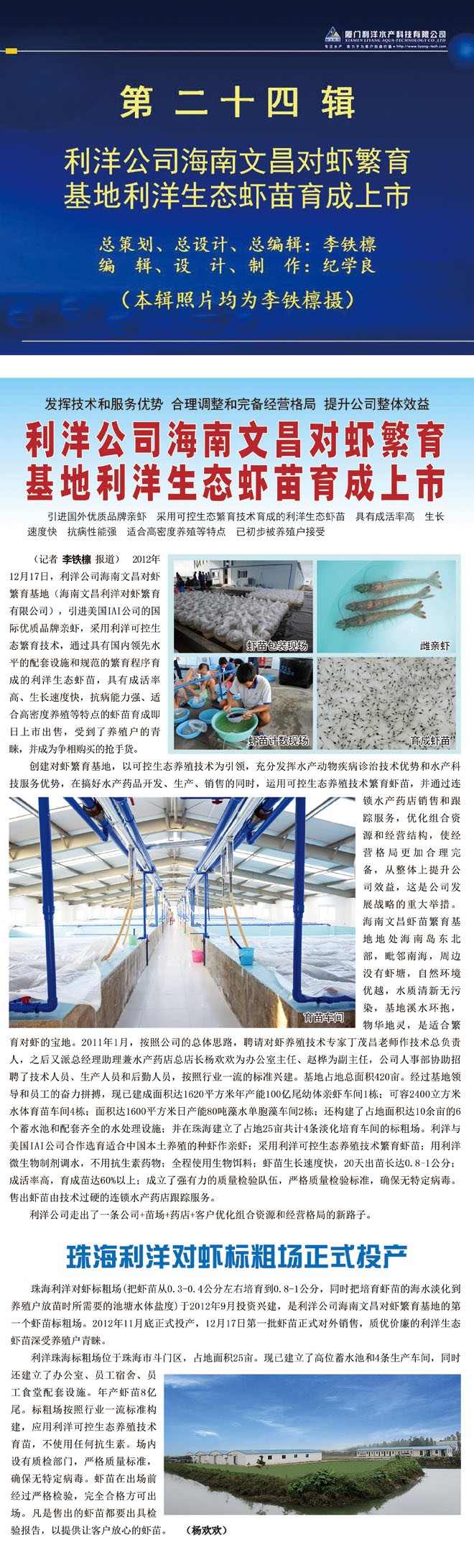 利洋公司海南文昌对虾繁育基地利洋生态虾苗育成上市