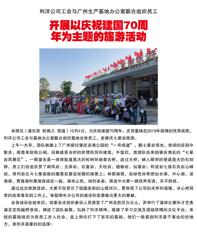 利洋公司工会与广州生产基地办公室联合组织员工开展以庆祝建国70周年为主题的旅游活动