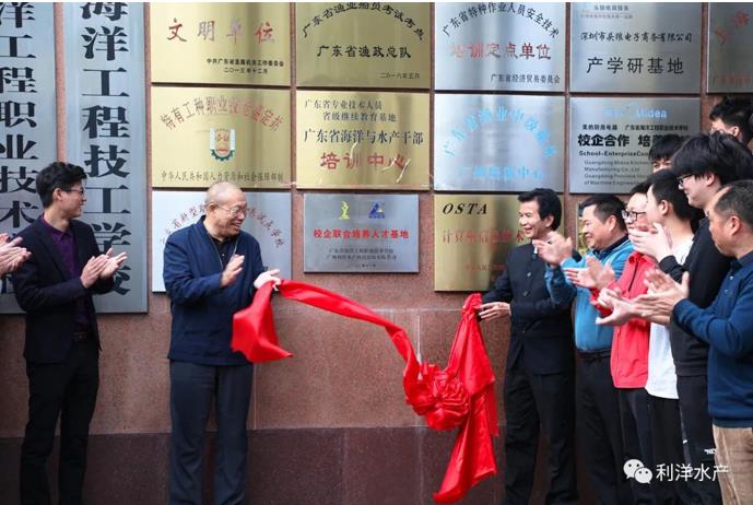 12月11日,广东省海洋工程职业技术学校联合利洋公司成立“校企联合培养人才基地”。这是利洋公司在坚持人才战略的宗旨下,联合招生的第一所高校。广东海洋工程职业技术学校校长彭国洪、水产养殖科科长方彰胜、副科长陈怀定、公司马老师及相关负责人参加了揭牌仪式。