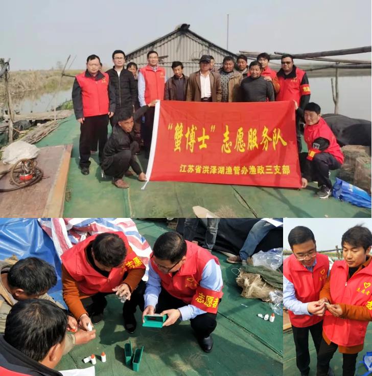为更好地服务洪泽湖外塘养殖区域和规范水产品用药,江苏省洪泽湖渔管办渔政三支部特邀买球网药店成立“蟹博士”志愿者服务队。