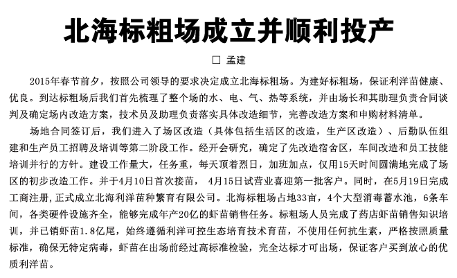 利洋公司虾苗场顺利通过ISO9001质量管理体系认证