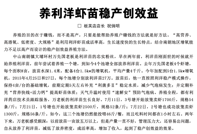 养利洋虾苗稳产创效益