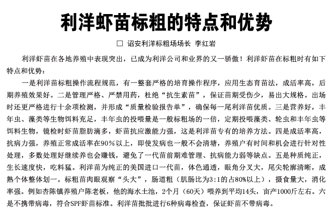 利洋公司虾苗场顺利通过ISO9001质量管理体系认证