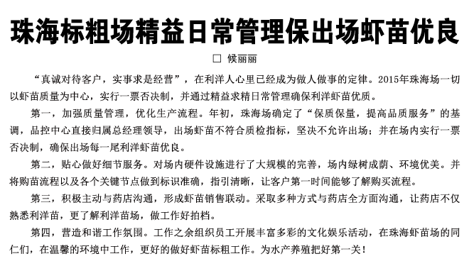 利洋公司虾苗场顺利通过ISO9001质量管理体系认证