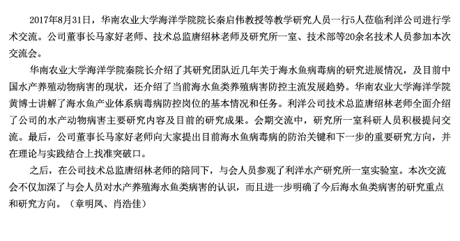 华南农业大学海洋学院研究团队莅临利洋进行学术交流