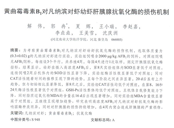 黄曲霉素B1对凡纳滨对虾幼虾肝胰腺抗氧化酶的损伤机制