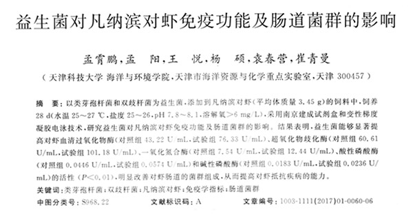 益生菌对凡纳滨对虾免疫功能及肠道菌群的影响