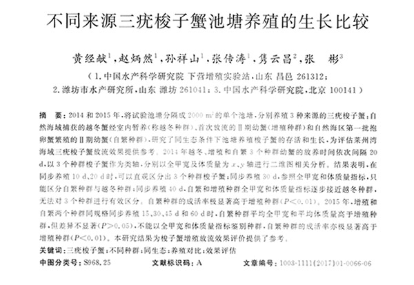 不同来源三疣梭子蟹池塘养殖的生长比较