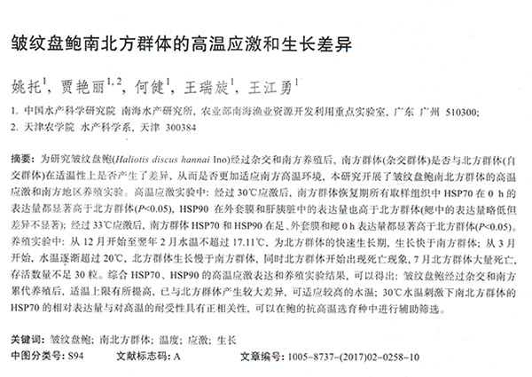 皱纹盘鲍南北方群体的高温应激和生长差异