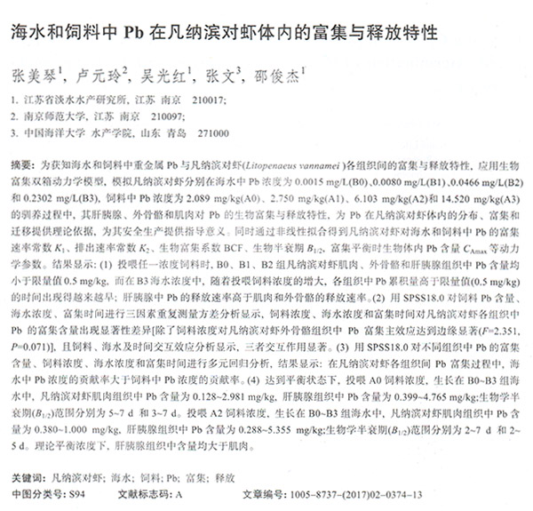 海水和饲料中Pb在凡纳滨对虾体内的富集与释放特性