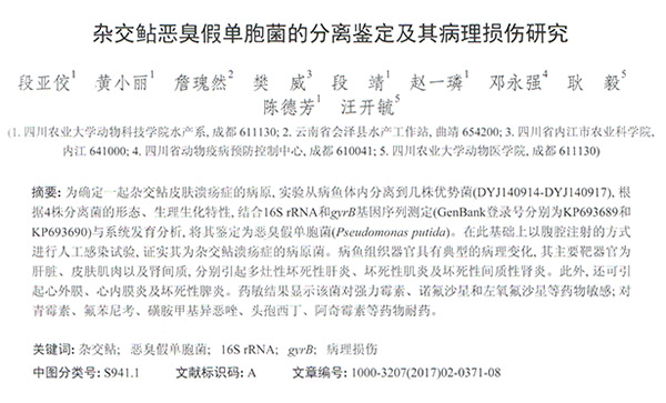 杂交鲇恶臭假单胞菌的分离鉴定及其病理损伤研究