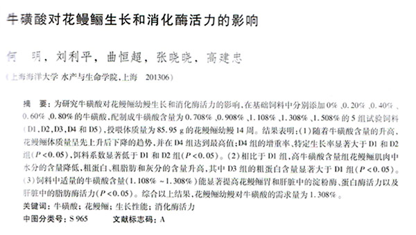 牛磺酸对花鳗鲡生长和消化酶活力的影响