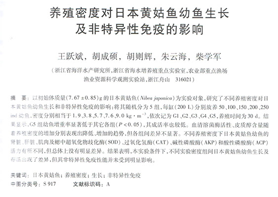 养殖密度对日本黄姑鱼幼鱼生长及非特异性免疫的影响