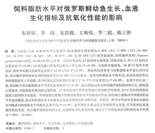饲料脂肪水平对俄罗斯鲟幼鱼生长、血液生化指标及抗氧化性能的影响