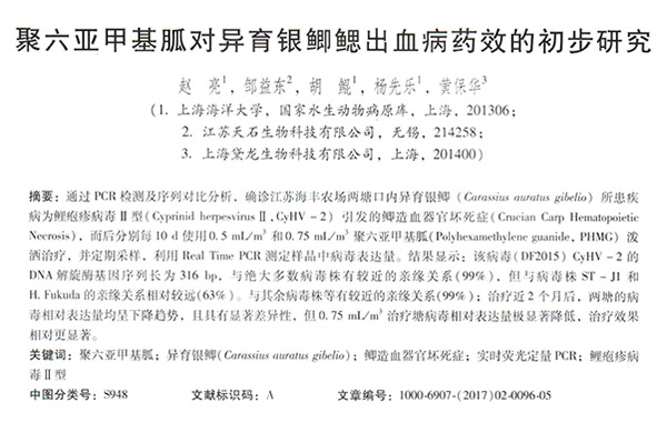 聚六亚甲基胍对异育银鲫鳃出血病药效的初步研究