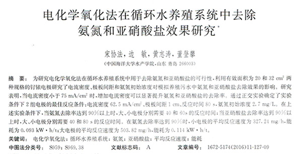 电化学氧化法在循环水养殖系统中去除氨氮和亚硝酸盐效果研究