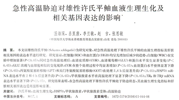 急性高温胁迫对雄性许氏平鲉血液生理生化及相关基因表达的影响