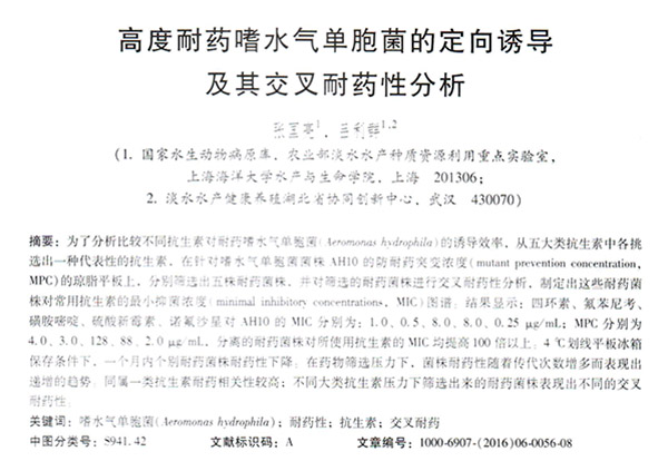 高度耐药嗜水气单胞菌的定向诱导及其交叉耐药性分析
