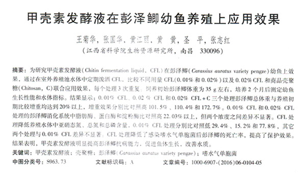 甲壳素发酵液在彭泽鲫幼鱼养殖上应用效果
