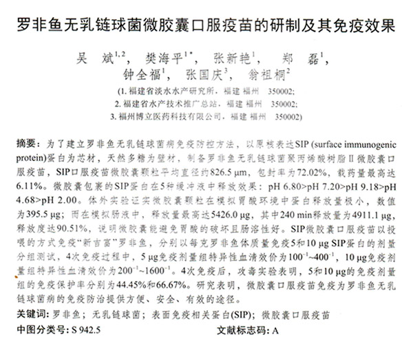 罗非鱼无乳链球菌微胶囊口服疫苗的研制及其免疫效果