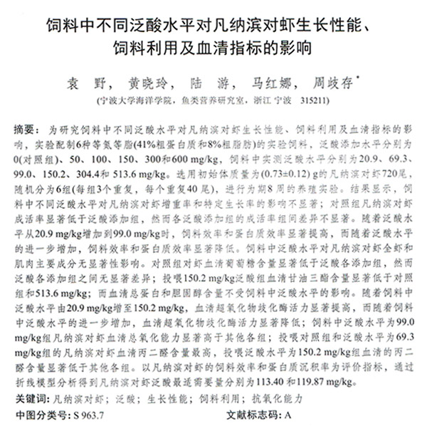 饲料中不同泛酸水平对凡纳滨对虾生长性能、饲料利用及血清指标的影响