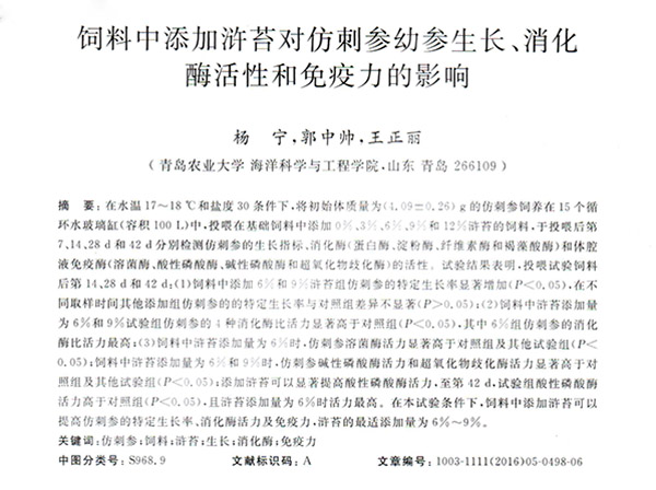 饲料中添加浒苔对仿刺参幼参生长、消化酶活性和免疫力的影响