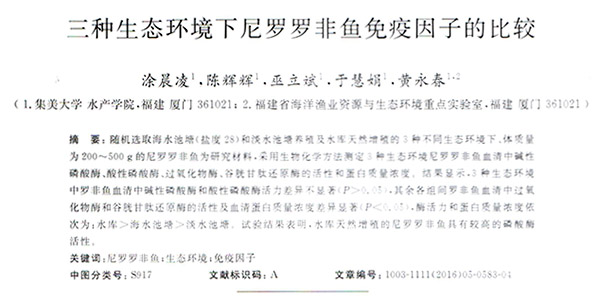 三种生态环境下尼罗罗非鱼免疫因子的比较