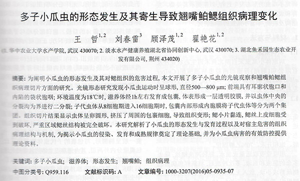 多子小瓜虫的形态发生及其寄生导致翘嘴鲌鳃组织病理变化