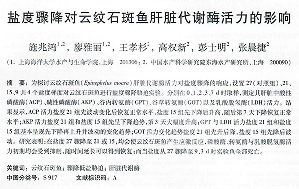 盐度骤降对云纹石斑鱼肝脏代谢酶活力的影响
