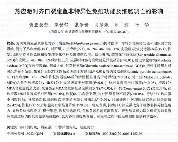 热应激对齐口裂腹鱼非特异性免疫功能及细胞凋亡的影响