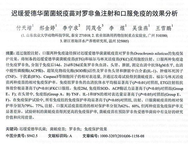 迟缓爱德华菌菌蜕疫苗对罗非鱼注射和口服免疫的效果分析