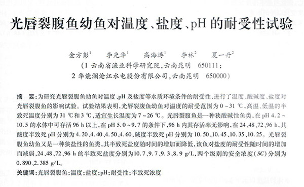 光唇裂腹鱼幼鱼对温度、盐度、pH的耐受性试验