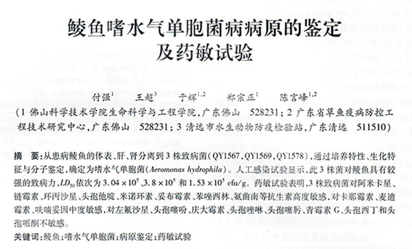 鲮鱼嗜水气单胞菌病病原的鉴定及药敏试验