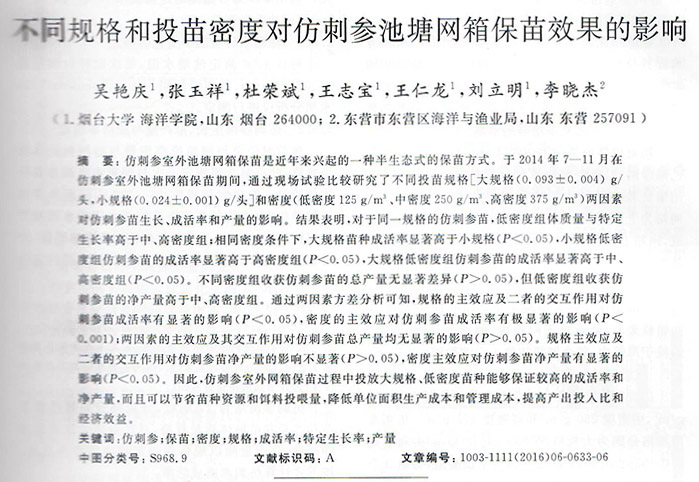 不同规格和投苗密度对仿剌参池塘网箱保苗效果的影响