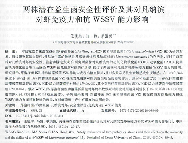 两株潜在益生菌安全性评价及其对凡纳滨对虾免疫力和抗WSSV能力影响