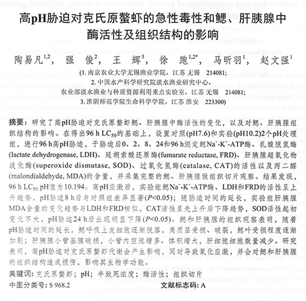 高pH胁迫对克氏原螯虾的急性毒性和鳃、肝胰腺中酶活性及组织结构的影响