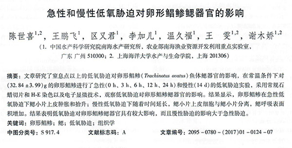 急性和慢性低氧胁迫对卵形鲳鲹鳃器官的影响