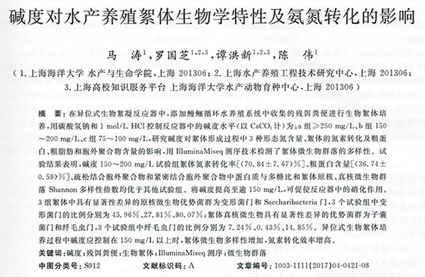碱度对水产养殖絮体生物学特性及氨氮转化的影响