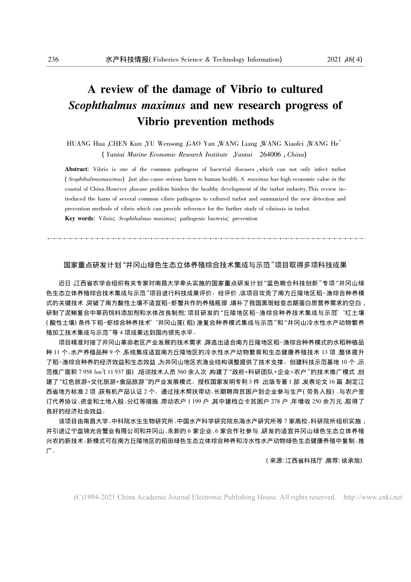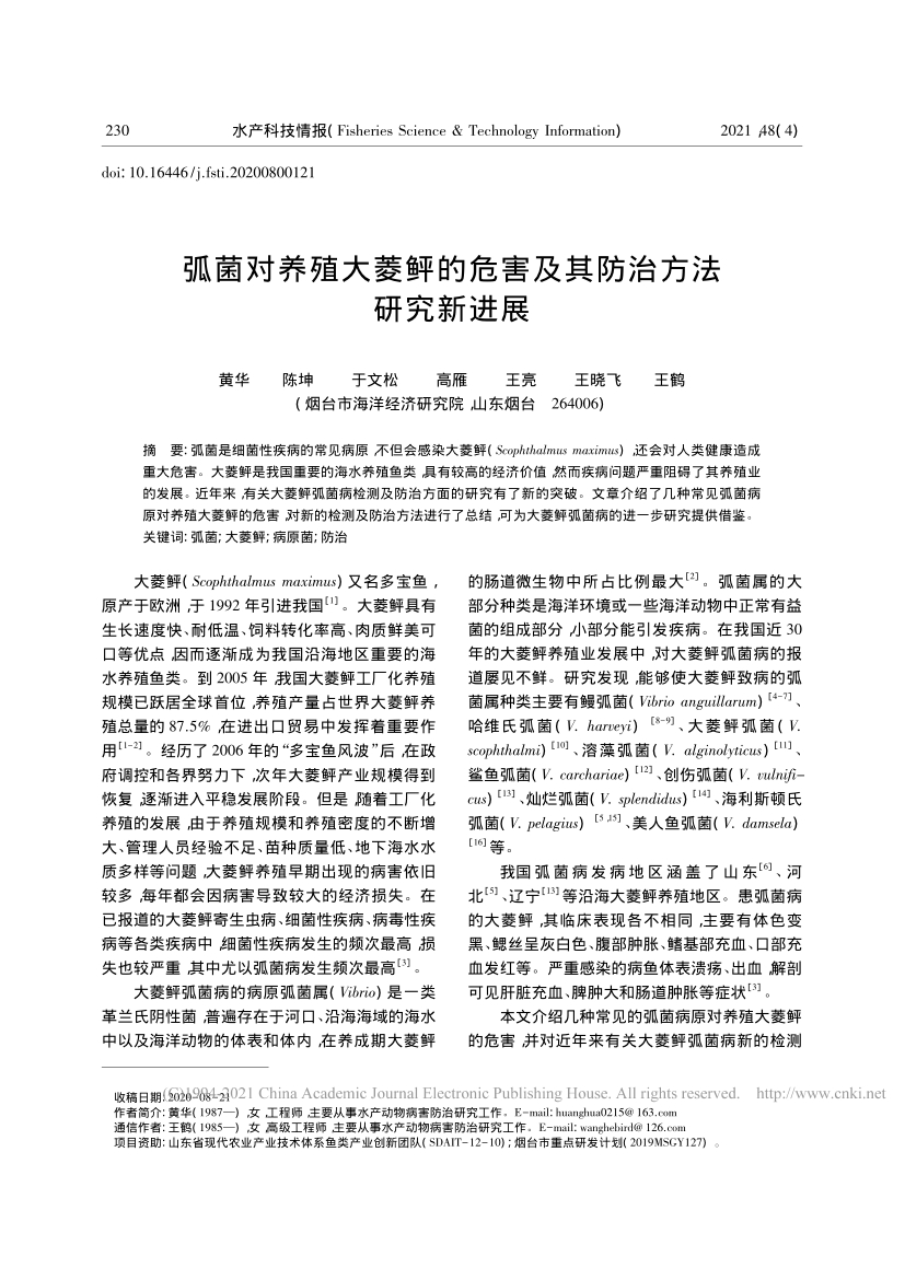弧菌对养殖大菱鲆的危害及其防治方法研究新进展