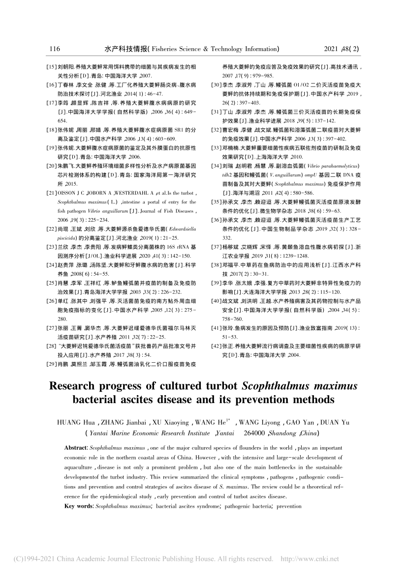 弧菌对养殖大菱鲆的危害及其防治方法研究新进展