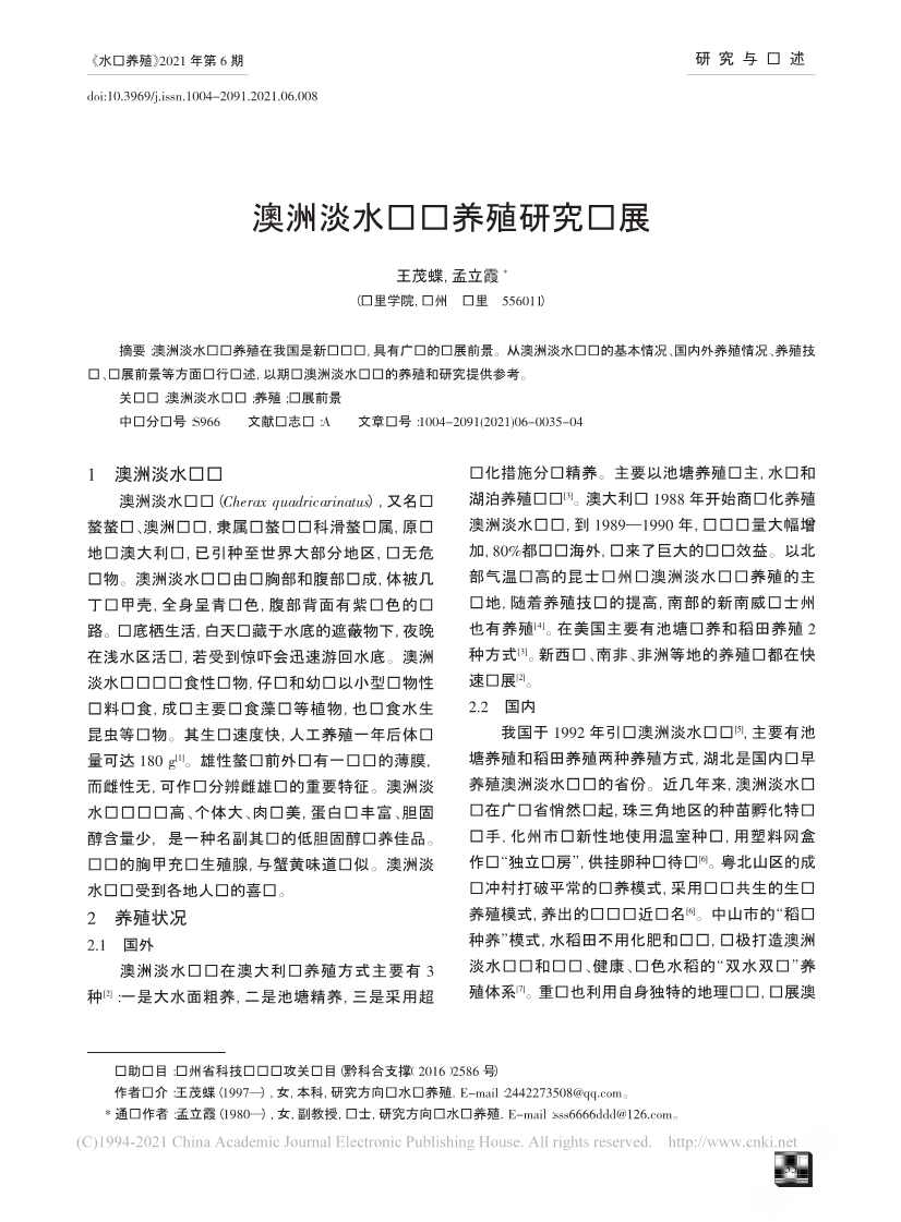 澳洲淡水龙虾养殖研究进展