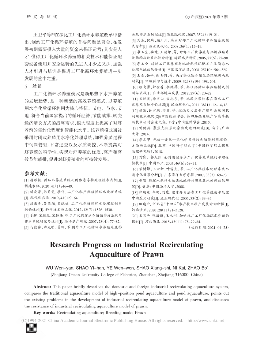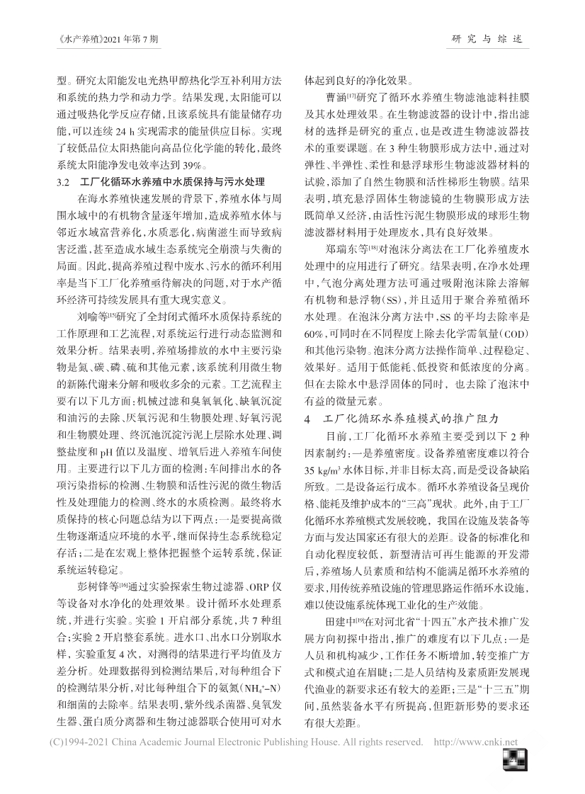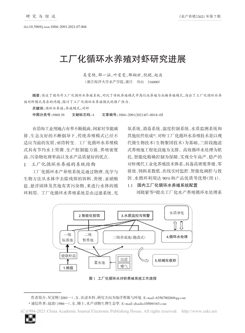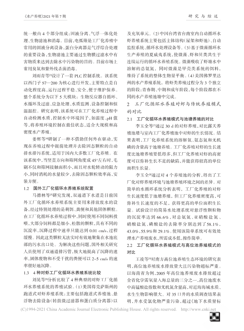 工厂化循环水养殖对虾研究进展