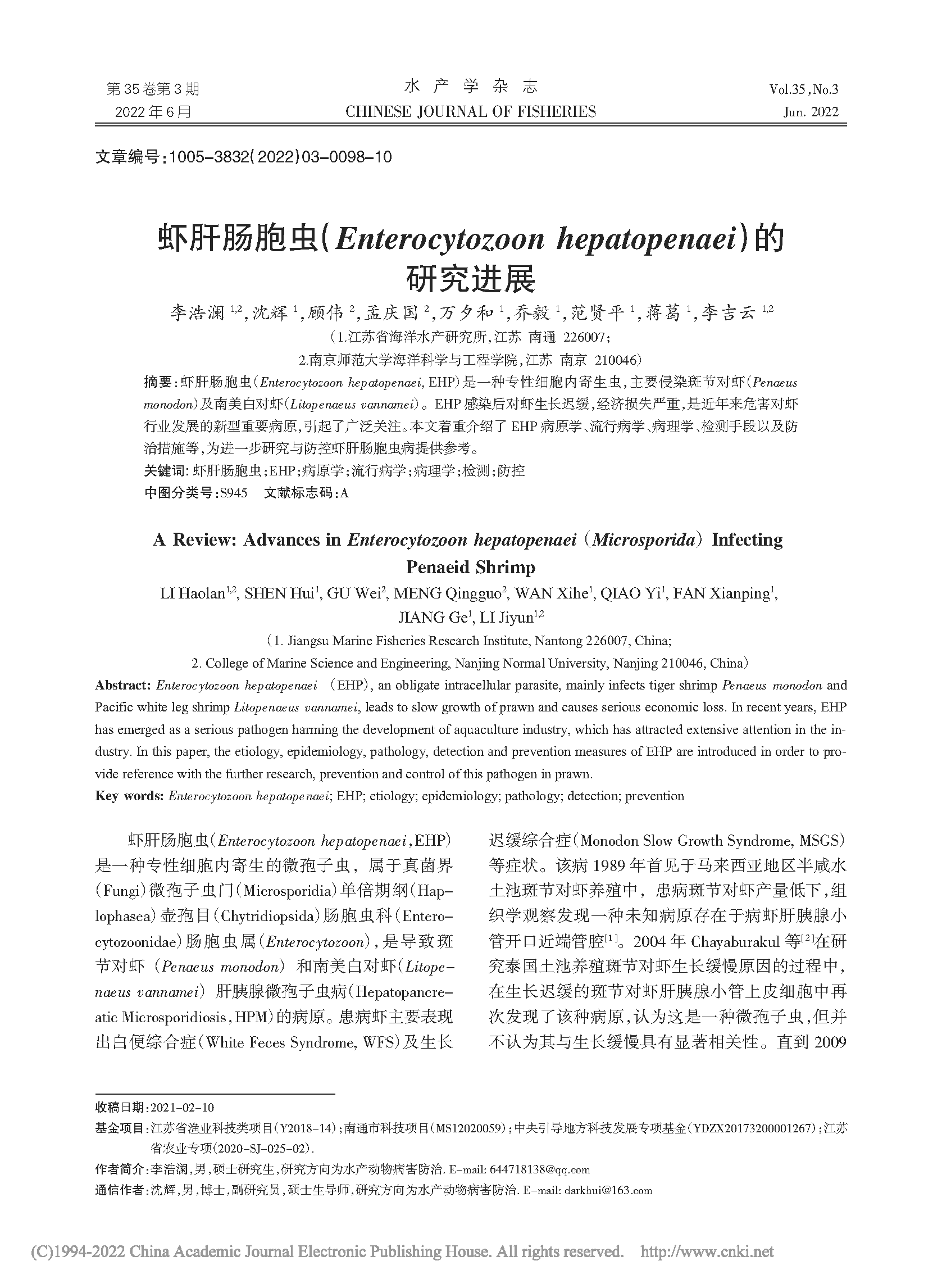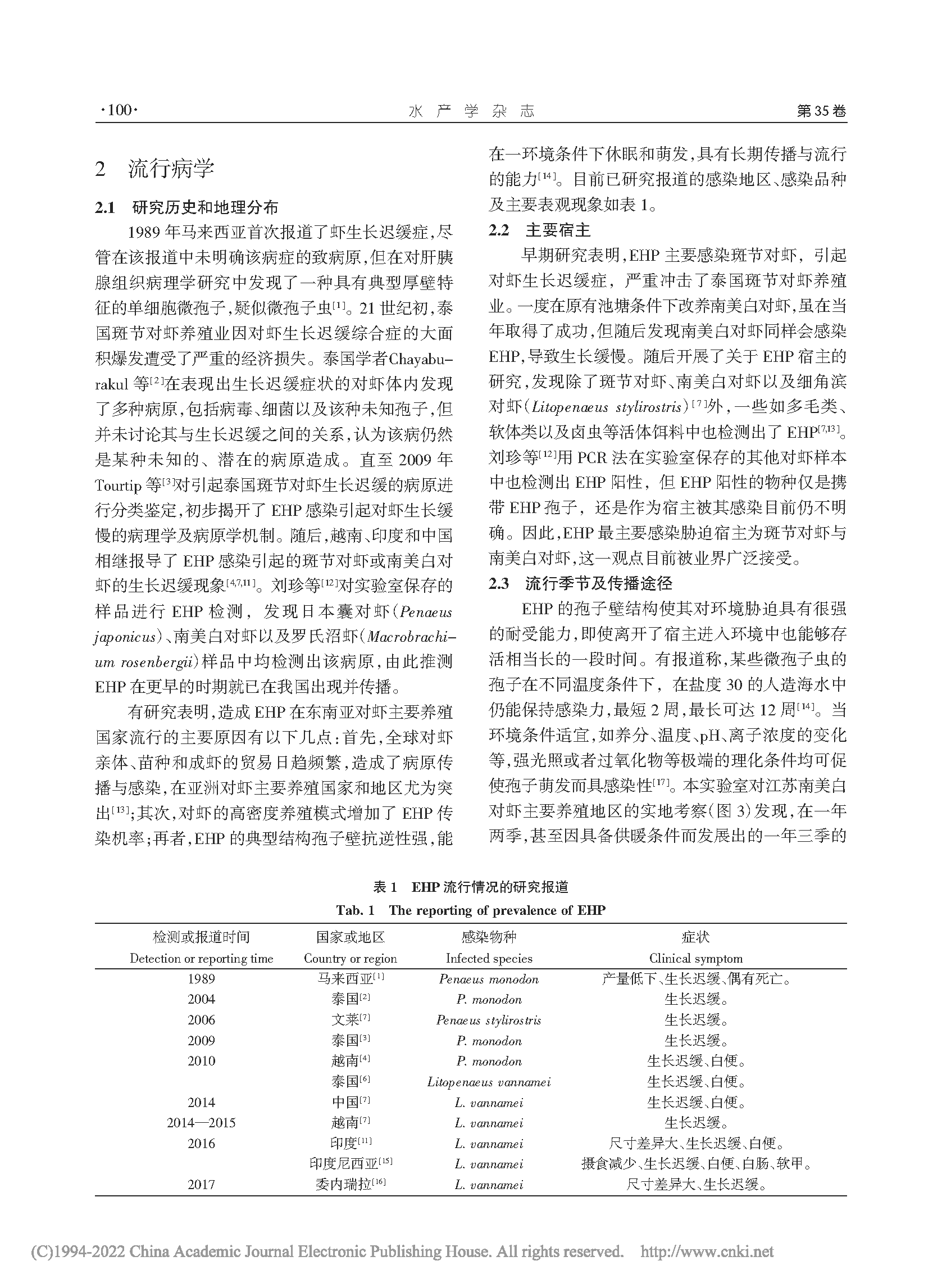 虾肝肠胞虫(Enterocytozoon hepatopenaei)的研究进展